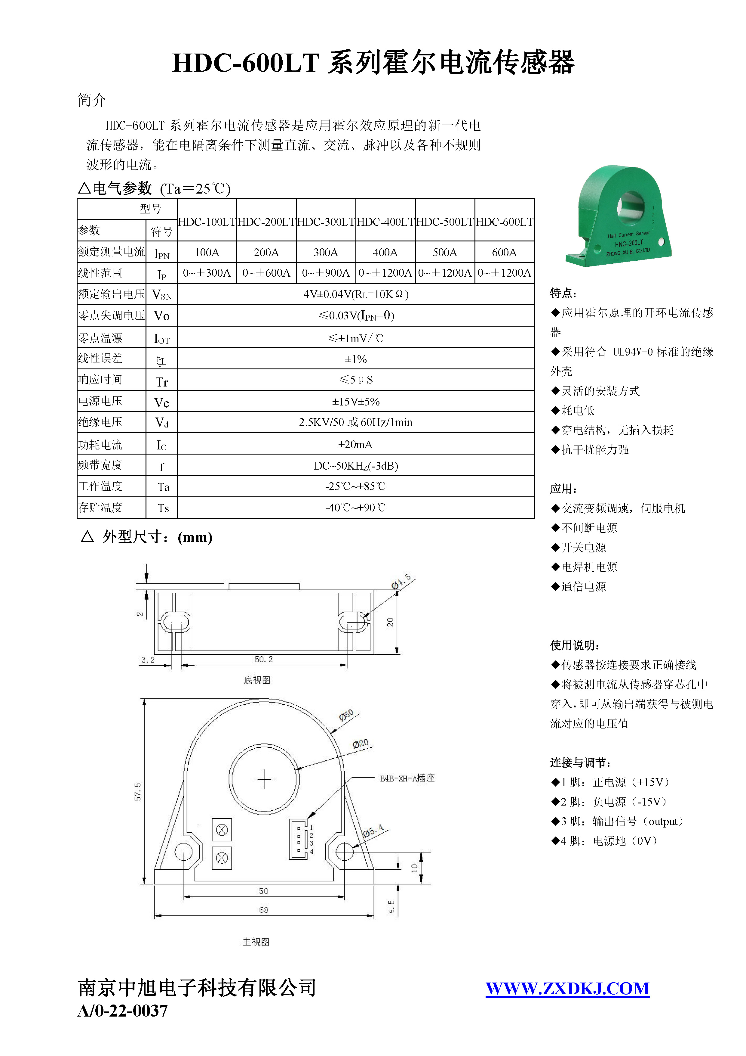HDC-600LT系列霍爾電流傳感器是應(yīng)用霍爾效應(yīng)原理的新一代電流傳感器,能在電隔離條件下測量直流、交流、脈沖以及各種不規(guī)則波形的電流。