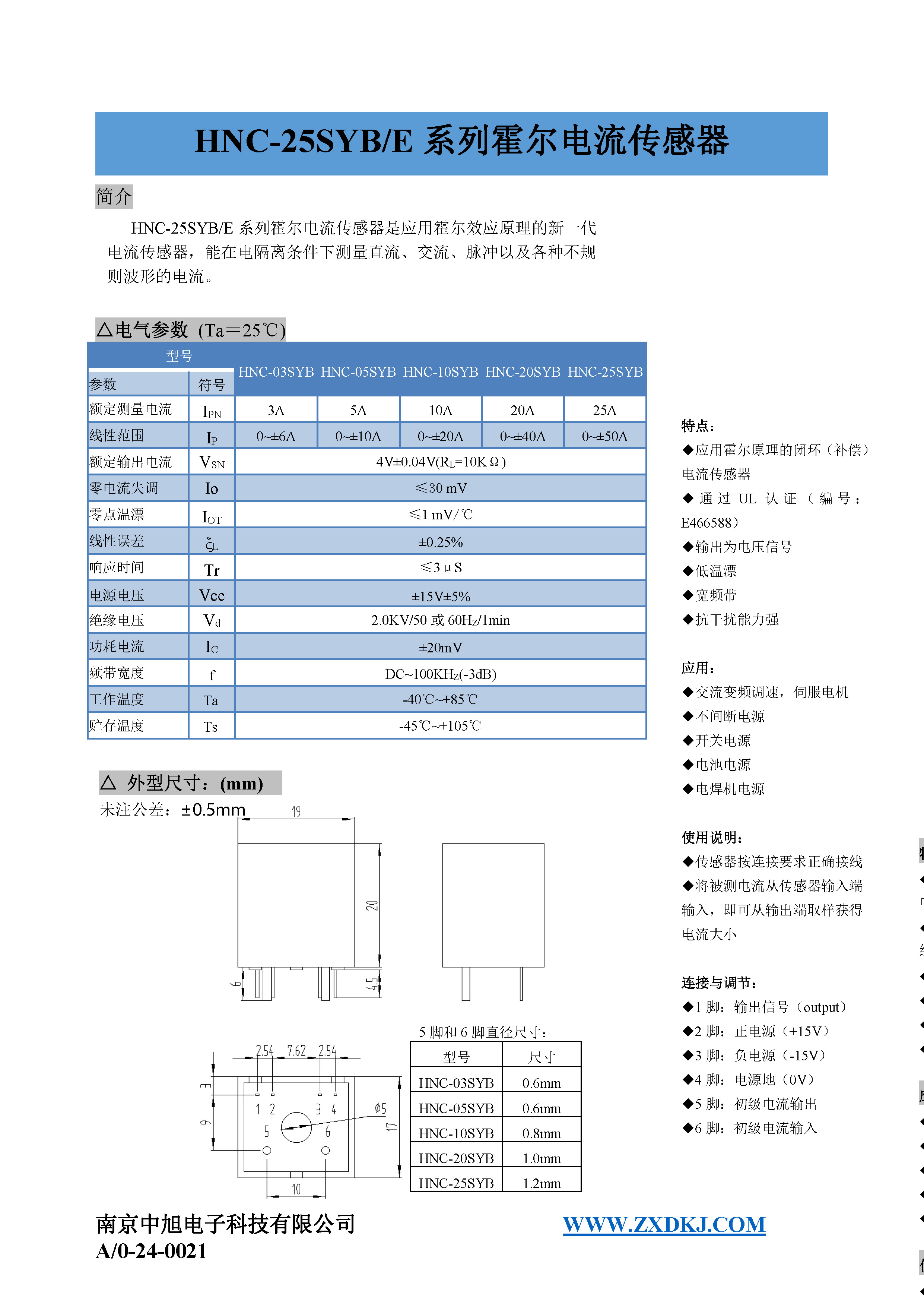 HNC-25SYB系列霍爾電流傳感器是應用霍爾效應原理的新一代電流傳感器,能在電隔離條件下測量直流、交流、脈沖以及各種不規(guī)則波形的電流。